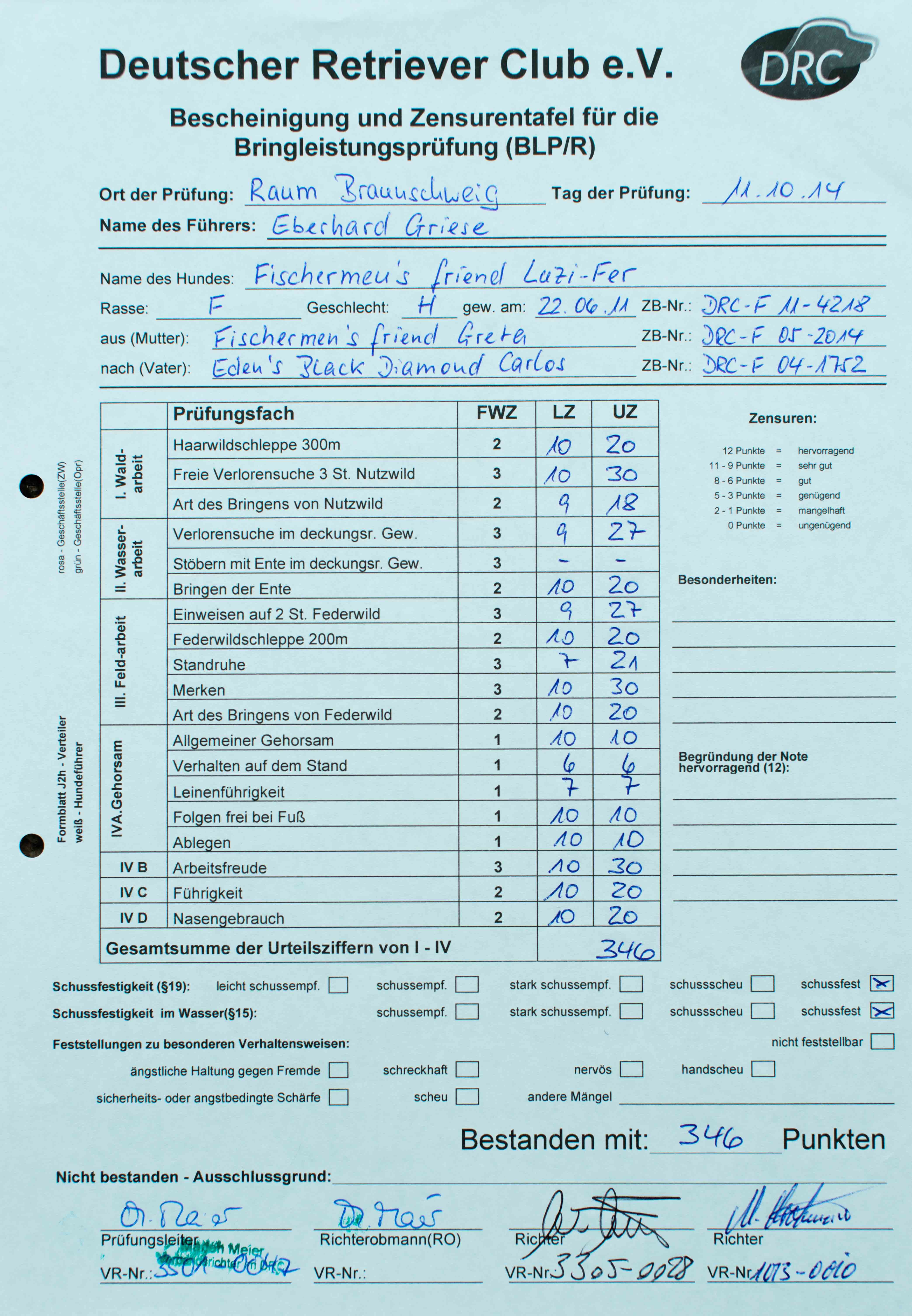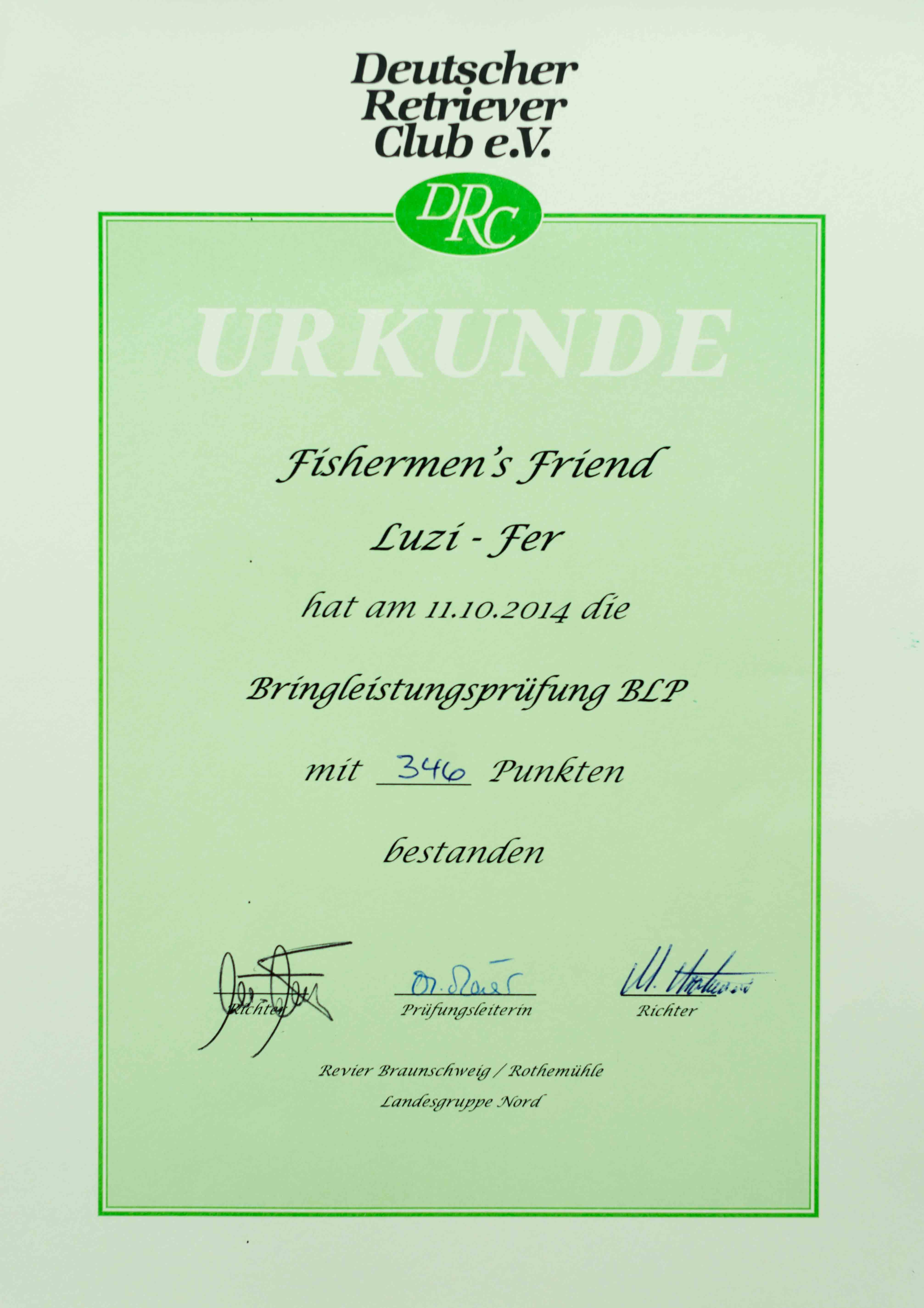 Aber das sie ja schnell lernt und auffrischt, haben wir im Herbst 2014 die BLP angegangen. Mit einenm Intensivkurs mit Unterstützung unserer hiesigen Obfrau für das Hundwesen im Jagdverband Frau Rsowitha Holtorf haben wir die Disziplinen alle nochmal durchgeübt und die Schusstreue trainiert. Alles kein Problem