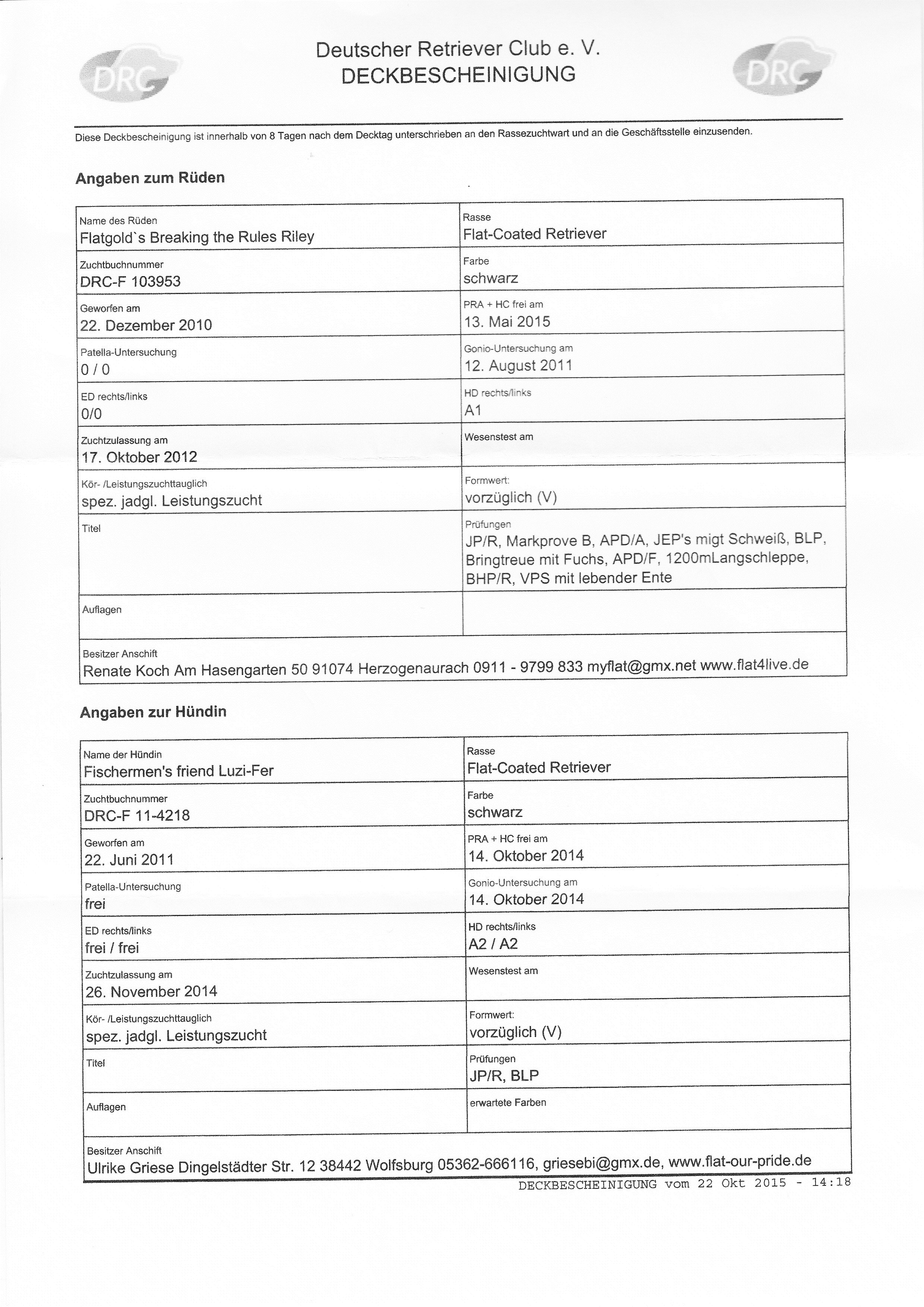 In drei Wochen dürften die kleinen Flats schon da sein. Waren gestern auch noch mal beim Tier-Doc weil Luzi etwas mehr Ausfluss hatte Geht aber allen gut.